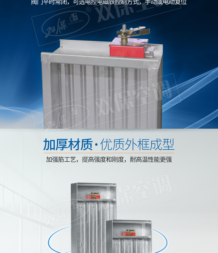 【閥門特點(diǎn)】CCCF認(rèn)證,輕巧實(shí)用,安全可靠,壽命長久。一般安裝在防煙系統(tǒng)管道,平時常閉,電動或手動開啟。